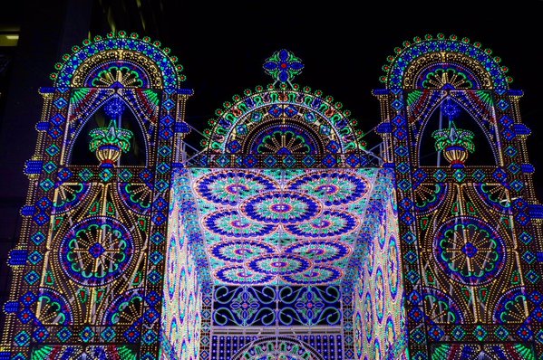 今年の神戸ルミナリエの作品は、日本初公開となる屋根付きの回廊「ガレリアコペルタ」を展示。