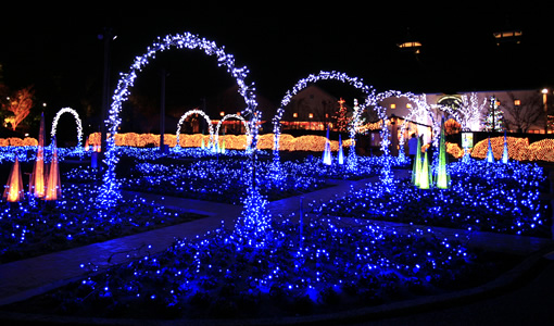 全国最大規模の水上イルミネーションや100メートルにも及ぶ青のトンネルも必見です!