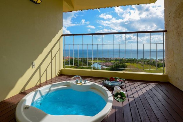 パームタワーズの客室バルコニーにはオープンジェットバスが完備されています。室内にはジェットバスとは別にお風呂もついています。