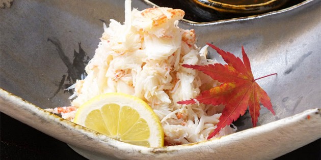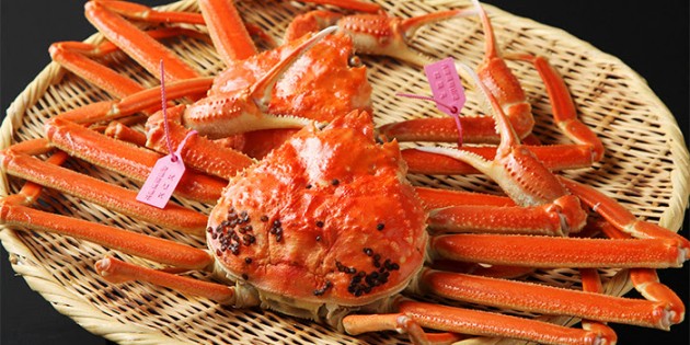 冬の味覚「蟹づくし」の活きたまま店に到着する日本海のずわい蟹と香箱蟹は、身がふっくら、味噌は甘くて濃厚、間違いのない味を堪能することができます。