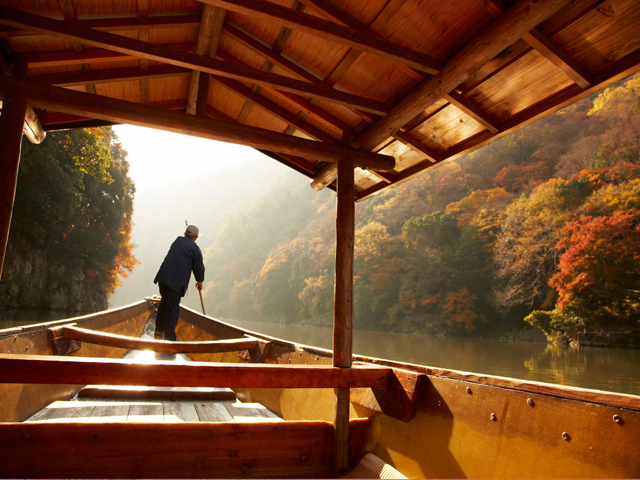 船で川を溯り、大堰川に沿ったその美しい景観の中に忽然と姿を現す「星のや京都」は、まさに旅人を別世界へと誘う「水辺の私邸」。
