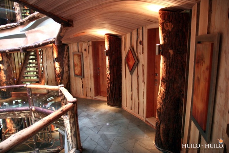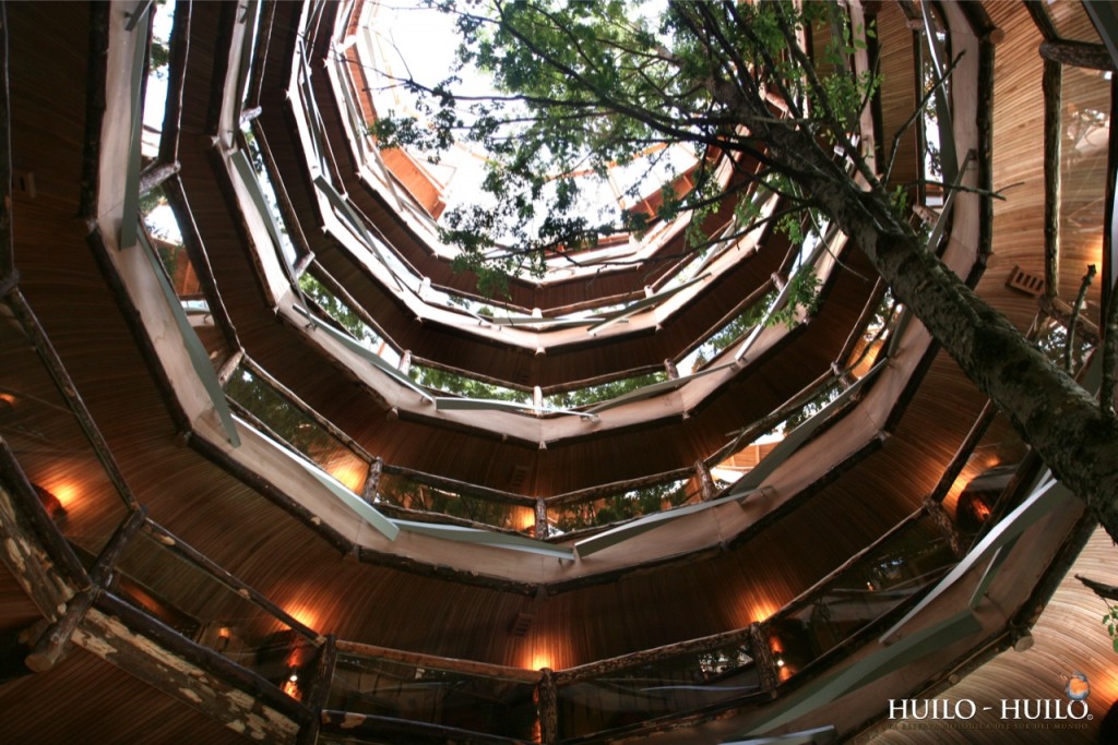 まるで松ぼっくりのようなノーソファガス・ホテルは、232平方マイルもの広さの熱帯雨林の中に建設され、自然素材をふんだんに使われたエコロジックな建造物であり、ホテルの真ん中には木が生えています。