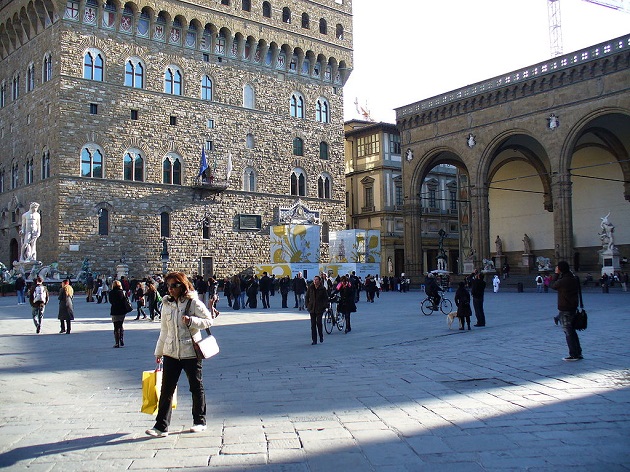 シニョリーア広場は、フィレンツェにあるヴェッキオ宮殿前にあるL字形の広場です。