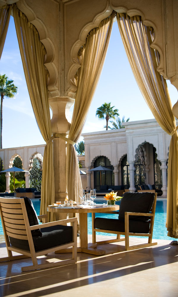 プールサイドで優雅に楽しむ食事の時間は格別です。フランス料理にインスパイアされたモロッコ料理に舌鼓を打つことができます。