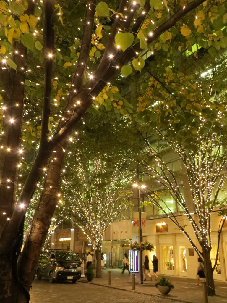 点灯時間は、11月は17:00~23:00、12月は17:00~24:00までの予定で、上品に輝く丸の内オリジナルカラー“シャンパンゴールド” 色のLED約103万球が、有楽町と大手町を結ぶ約1.2kmに及ぶ丸の内仲通り沿いの街路樹約250本を彩ります♪