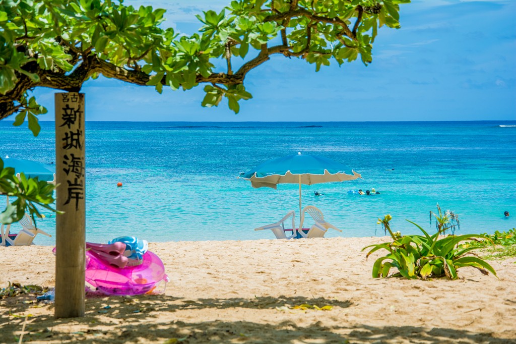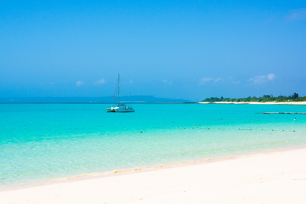 宮古空港から車で約20分ほど行ったところにある与那覇前浜ビーチは、「東洋一の白い砂浜」とも言われる宮古島を代表する美しいビーチで、真っ白な砂浜が延々と7kmも続きます。